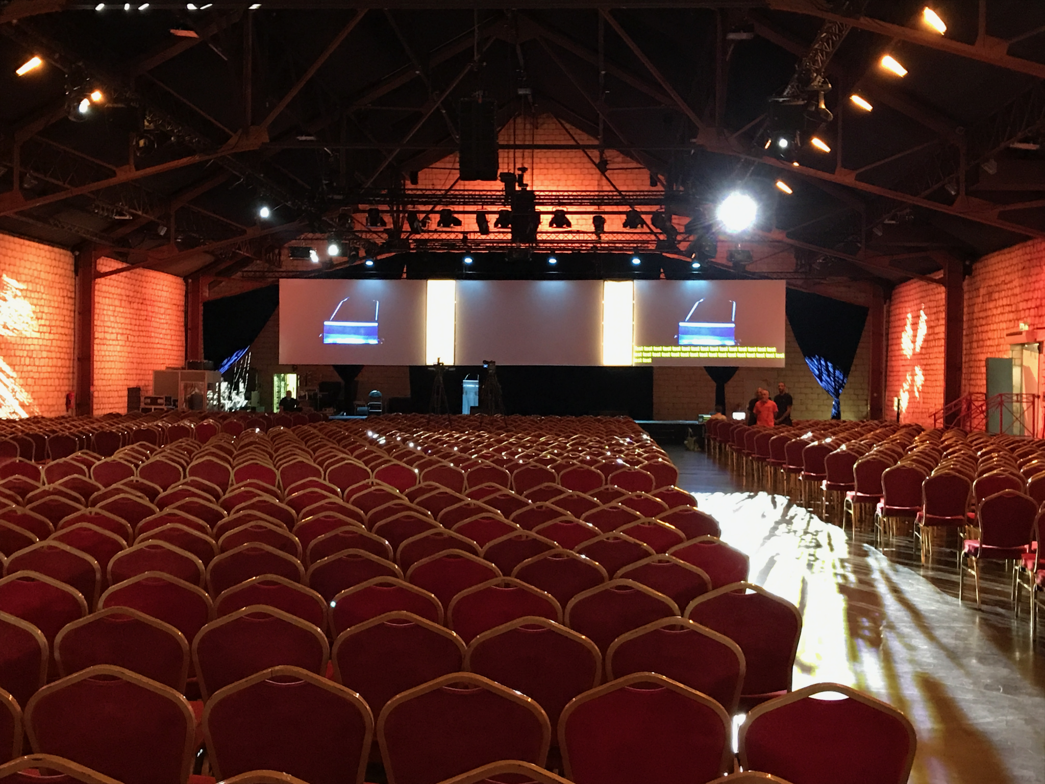 45 minutes later, for those volunteering over the coming days, there was the first of 2 ‘inductions’, where we get told of any rules and shown around the place. And, by God, is it massive. 3000 people are due tomorrow from 83 countries and we have 2 presentation halls, each accommodating 1500 people.