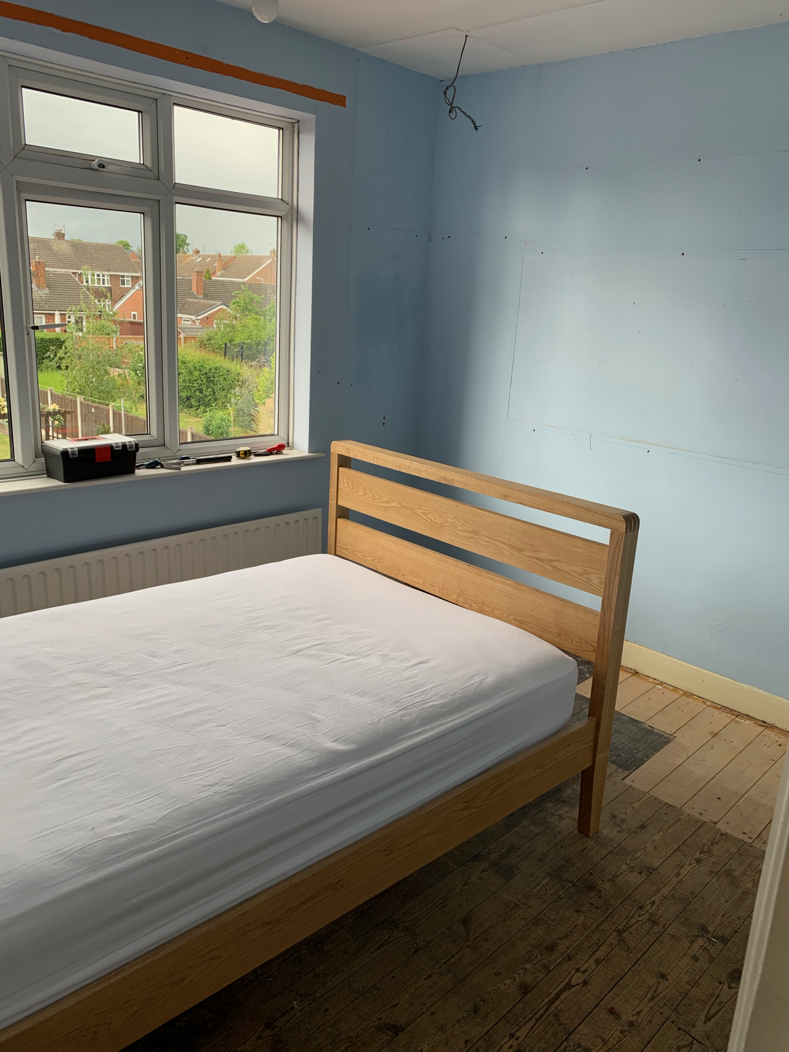 Now, for some-one who likes to blog about this kind of thing, I was rather tardy in not taking pictures at the right time. I realised after gutting the bedroom that I hadn’t taken a “before” picture. I also planned to take a picture of the skip to show exactly what had been removed but then it was collected early. But I’ve taken pictures where I’ve remembered but will need to use my power of words to try and describe things better.